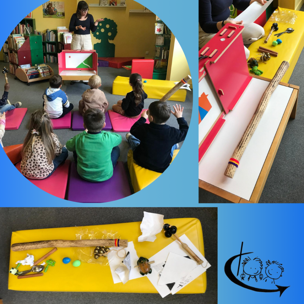 Ils ont écouté l’histoire avec beaucoup d’intérêt et ont réagi aux différents sons et passages musicaux. Certains ont même accompagné le récit en utilisant les instruments découverts auparavant. Ce moment a favorisé leur concentration, leur imagination et leur plaisir de découvrir la musique à travers une histoire vivante et interactive.
